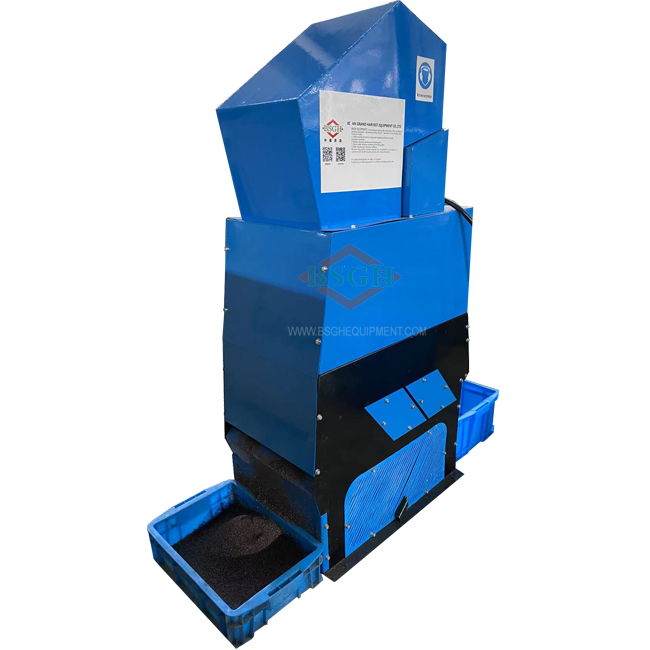 BS-05 is the newest homemade copper wire granulator machine with a single-phase copper wire recycling machine in the BSGH factory, granulates and separates copper granules and plastic granules from waste cable wire. After the crushing and separating process, the final product pure copper granules and plastic granules will be separated in the copper outlet and plastic outlet respectively.